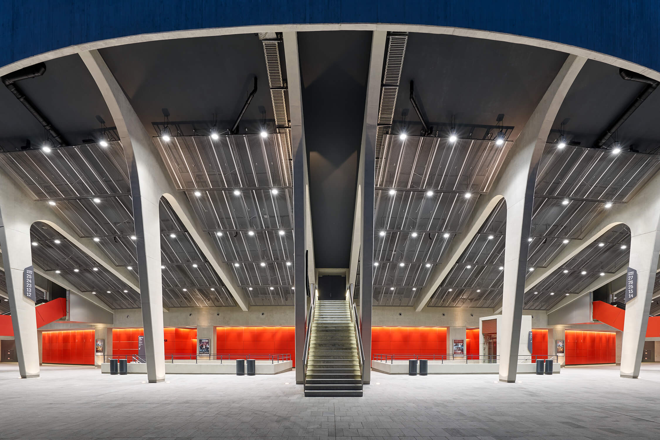Bühnenseitig bietet ein U-förmiges, sechsgeschossiges Gebäude Platz für ein Zwischenlager, eine Cafeteria, Umkleiden und die Büros der Verwaltung. Durch eine gemeinsame Dachkonstruktion aus Stahl und umlaufende transluzente und von innen beleuchtbare Lamellen werden Auditorium und Bühnengebäude zu einer weithin sichtbaren Großform zusammengefasst. Die Dachfläche über dem Zuschauerbereich lässt sich öffnen und alle Lamellen sind drehbar, wodurch sich die Black Sea Arena an unterschiedliche Witterungen und Situationen anpassen kann. Je nach Bedarf kann sie in ihrer Umgebung ruhig und zurückhaltend bleiben, oder sich für Veranstaltungen einladend öffnen und die Besucher:innen willkommen heißen.