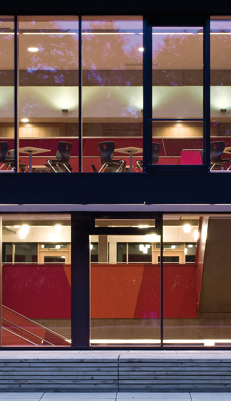 Erweiterung des Gymnasiums um eine Mensa, Aula und Bibliothek.
