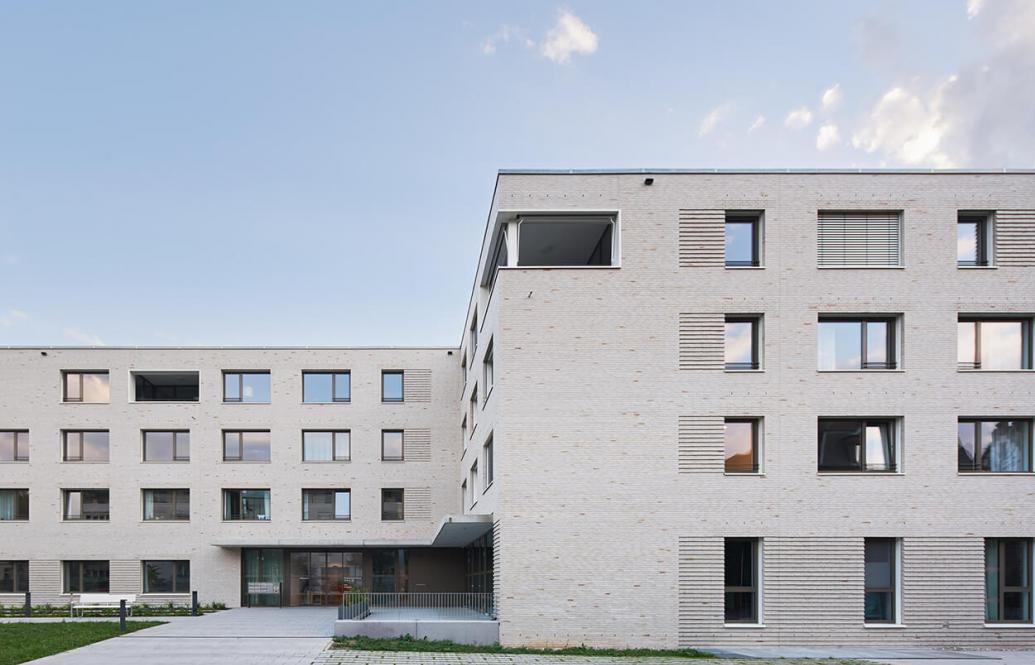 In Fortsetzung einer bestehenden Wohnanlage waren zwischen Uni-Campus und Landschaftsschutzgebiet weitere 125 Wohnungen für 500 Studenten:innen zu planen. Als Gelände stand eine steil nach Norden abfallende Wiese zur Verfügung. Um den Hang zu schonen und Durchblicke freizuhalten, wurde die Bebauung in zwei Gebäudegruppen mit je vier Häusern am oberen Hang konzentriert.