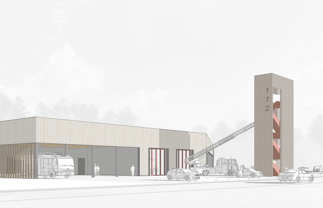 Der Neubau präsentiert sich als Stadtbaustein am Rande der Altstadt. Seine Anmutung und Materialität wird durch die angrenzende, historische Umgebungsbebauung geprägt und inspiriert. Durch die Sockelfassade in gestocktem Sichtbeton zeigt sich die Feuerwache gut ablesbar im Straßenraum.